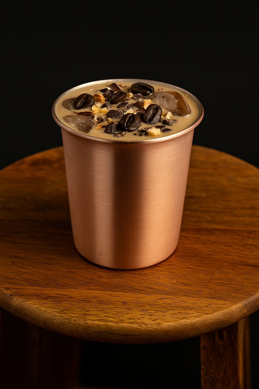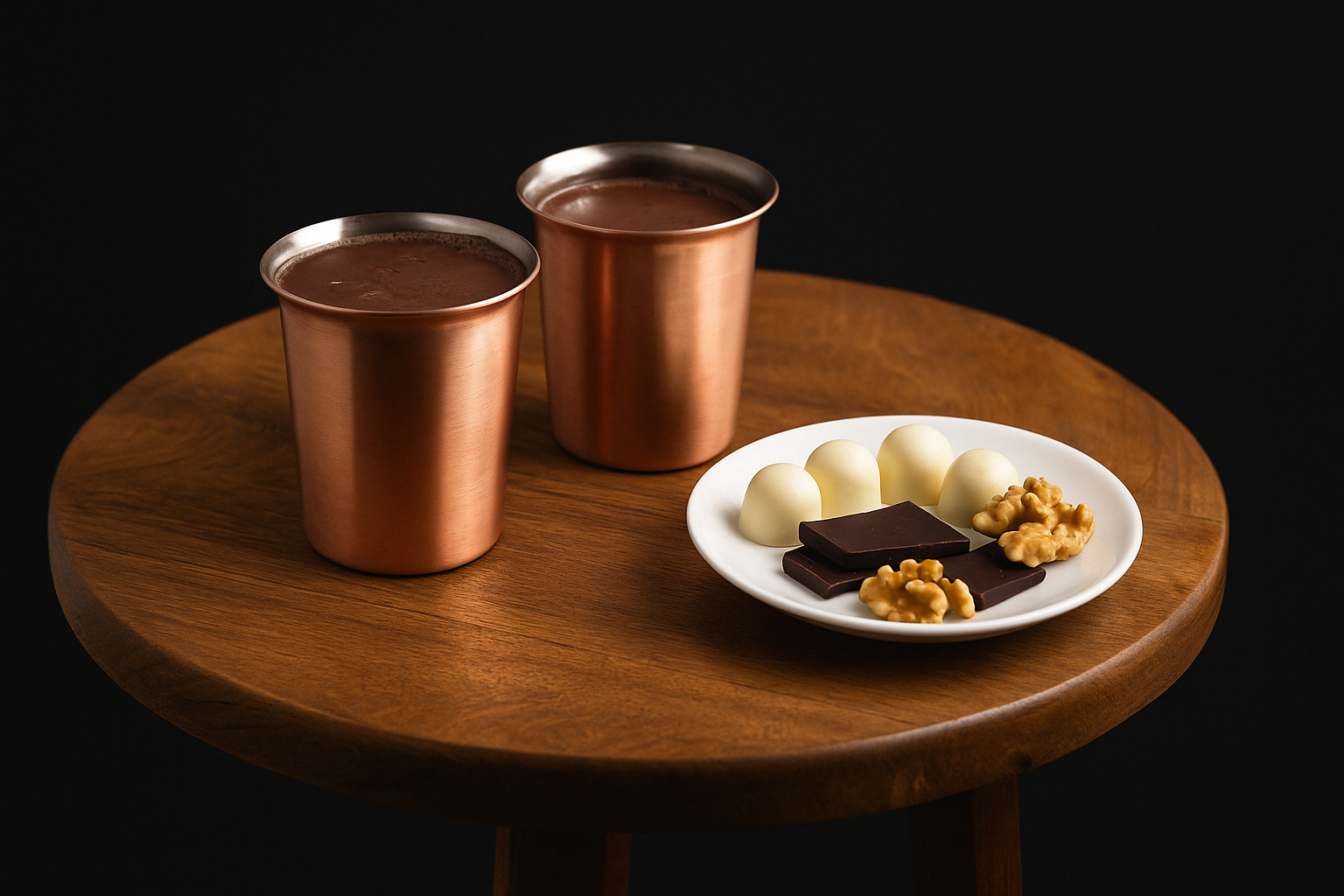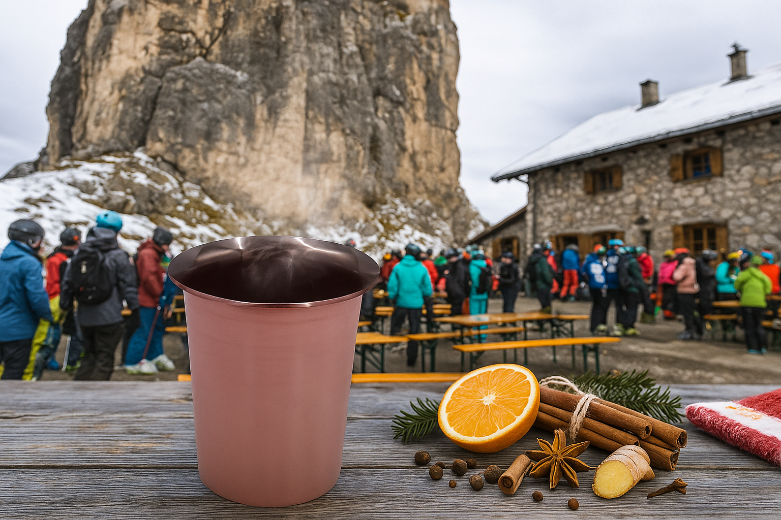 5. Serviere den Glühwein in unseren edelstahlplattierten Kupferbecher und genieße ihn heiß.