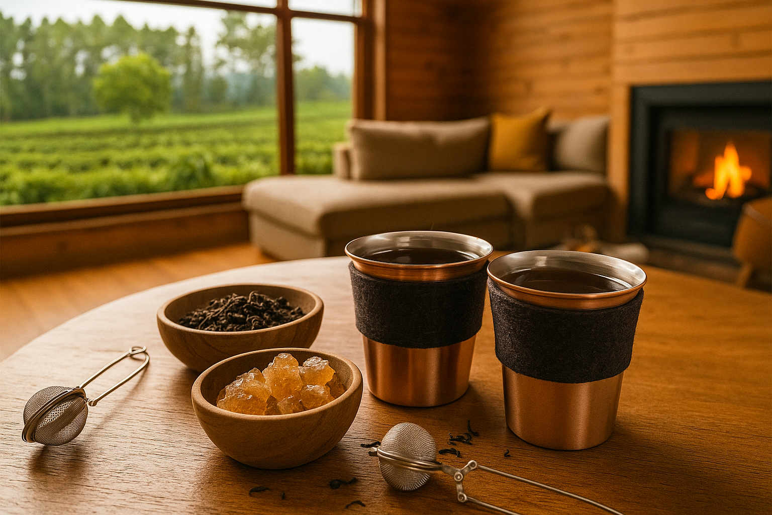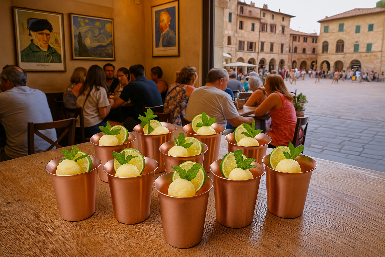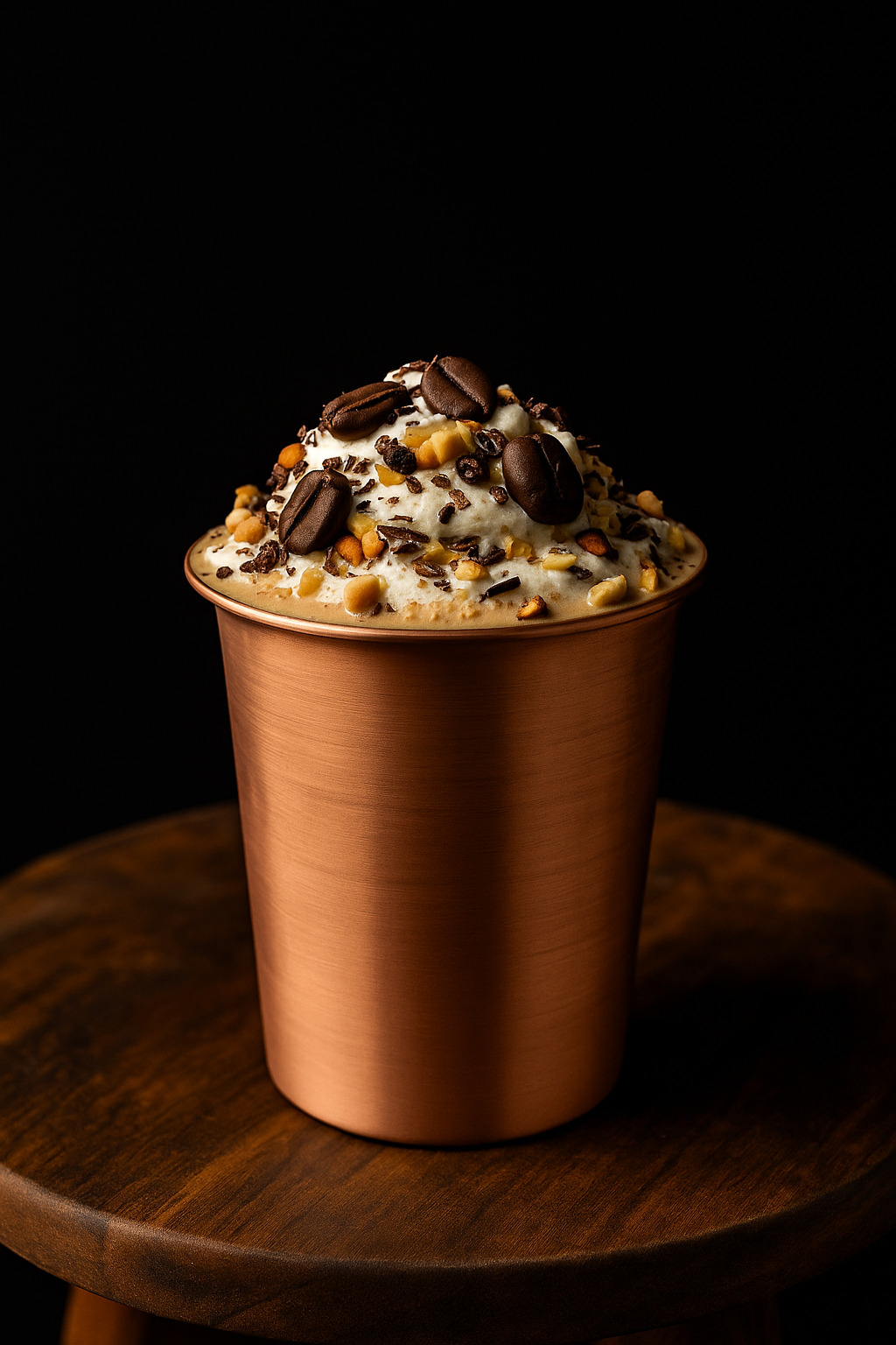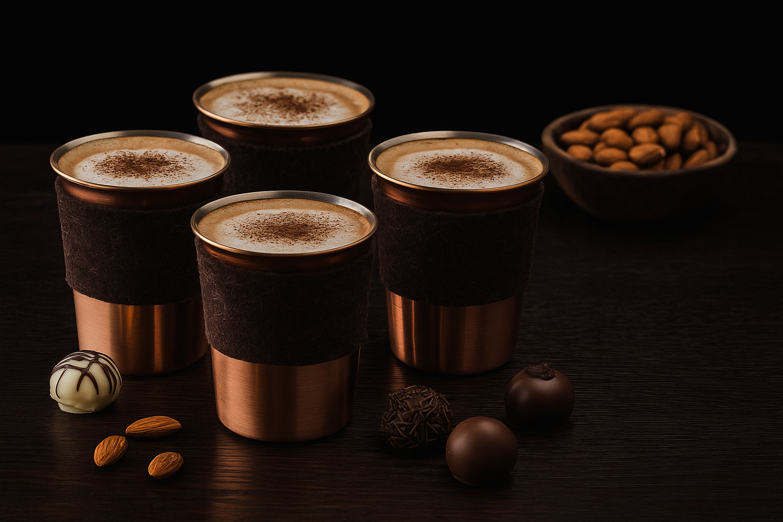 5. Serviere den Glühwein in unseren edelstahlplattierten Kupferbecher und genieße ihn heiß.