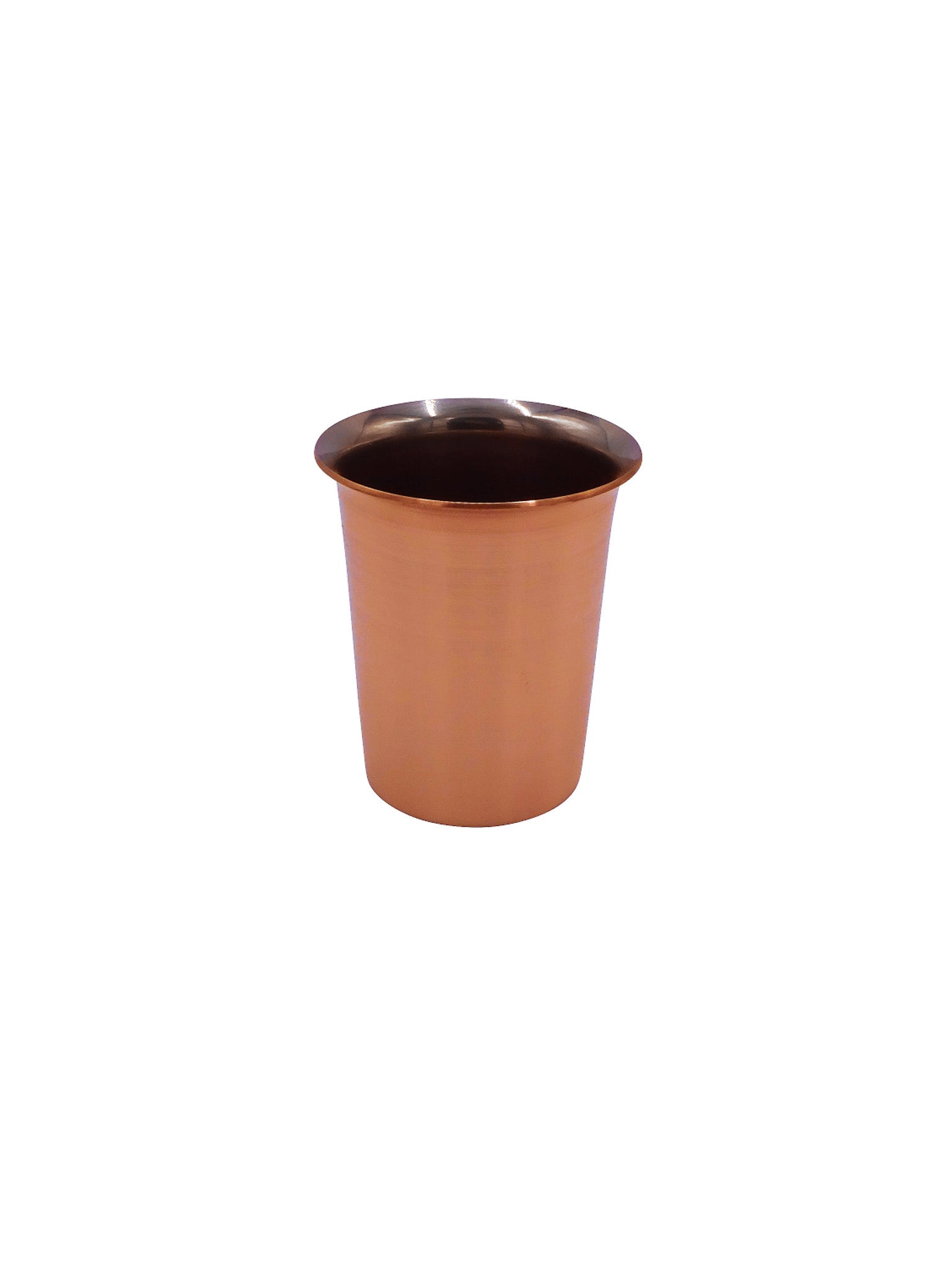Der Kupferbecher mit edelstahlplattiertem Kupfer, eignet sich hervorragend zum Trinken von Glühwein oder anderer Heißgetränke. Da die Außenseite immer noch aus Kupfer ist, während die Innenseite aus Edelstahl besteht. Das ist deshalb so, da im reinen Kupferbecher das Getränk mit dem Kupfer reagiert und diese Reaktion nur bei bestimmten Lebensmitteln erwünscht ist, in diesen Falle empfehlen wir ihnen dann den reinen Kupferbecher.