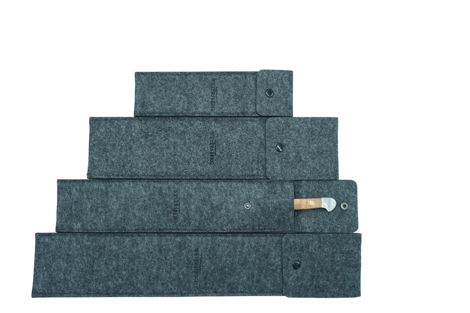 Die Filztasche für Messer gibt es in 4 verschiedenen Größen, die Taschen sind mit unserem Kupfermanufaktur Weyersberg Loge versehen.