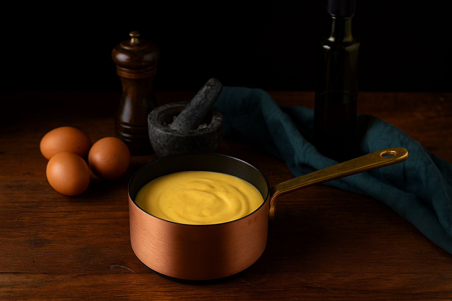 Phänomenale Wärmeleitfähigkeit: Kupfer leitet Wärme blitzschnell und absolut gleichmäßig vom Boden bis in den obersten Rand. Dies eliminiert die gefürchteten "Hotspots", die empfindliche Zutaten wie Eigelb oder Milch zum Anbrennen oder Gerinnen bringen. Ihre Sauce Hollandaise oder Beurre Blanc gelingt mühelos und ohne Stress.